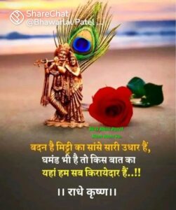 🙏🏻 *अर्थ- भगवान श्रीकृष्ण अर्जुन से कहते हैं कि हे अर्जुन। कर्म करने में तेरा अधिकार है। उसके फलों के विषय में मत सोच। इसलिए तू कर्मों के फल का हेतु मत हो और कर्म न करने के विषय में भी तू आग्रह न कर।*