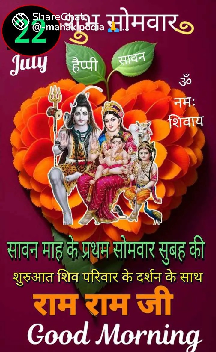 🙏🏻 *भगवान शिव का पवित्र श्रावण (सावन) मास 22 जुलाई 2024 सोमवार से शुरू हो रहा है, (उत्तर भारत हिन्दू पञ्चाङ्ग के अनुसार) (गुजरात एवं महाराष्ट्र के अनुसार अषाढ़ मास चल रहा है वहा 05 अगस्त, सोमवार से श्रावण (सावन) मास आरंभ होगा)*
