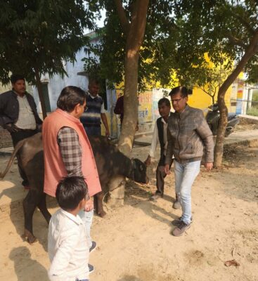 उसके बाद उप मुख्य पशु चिकित्सा अधिकारी कलवारी सदर हाथरस डा०- सुधीर कुमार डवास के द्वारा पशुओं को विभिन्न बीमारियों से बचाव हेतु टीकाकरण एवं विभिन्न रोगों से अपने पशुओं को बचाव हेतु जानकारी पशु पालको को प्रदान की गई ।
